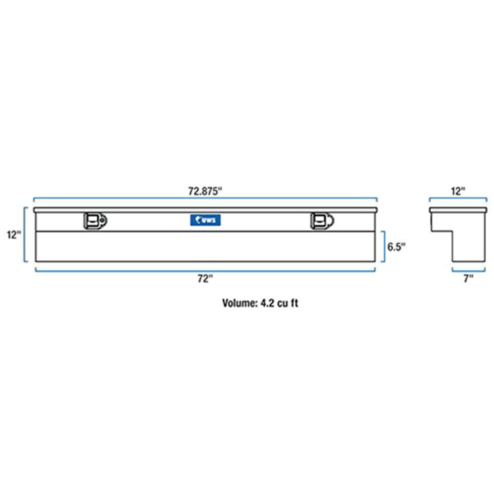 The TBSM-72 toolbox also comes complete with two built-in tool sections for easy and accessible item storage. Its construction is made out of .063 in. diamond treaded aluminum, which will resist daily wear and tear from usage. This UWS toolbox measures 72 in. long x 11-1/4 in. deep x 11 in. high.