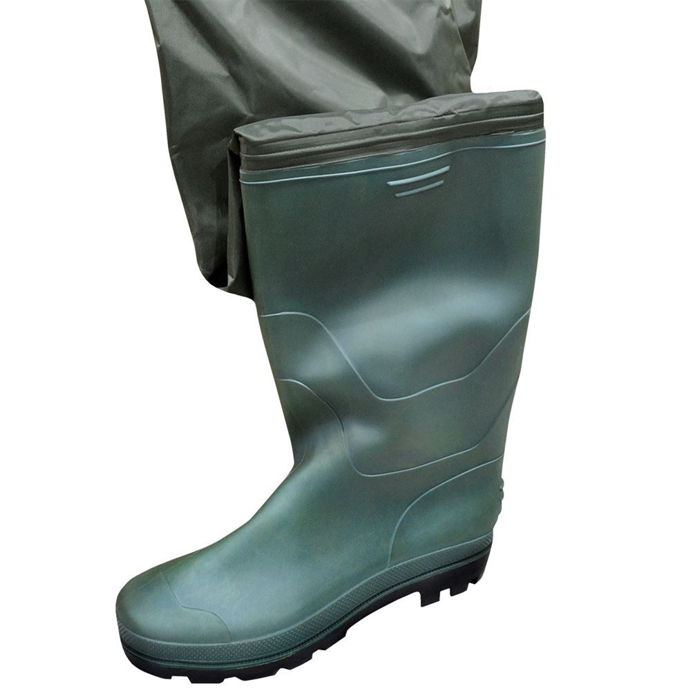 Whether your waterfowl hunting or wading the streams for bass these PVC boot chest waders should be your option. They are 100% waterproof and have an adjustable nylon strap and inside pocket. They also have cleated outsole for super traction when you're in action. PVC is 35% lighter that rubber waders, they have more flexibility and less chafing than rubber waders.
