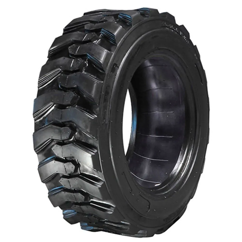 Need a heavy gauge durable construction skid steer loader tire? With overlapping lugs and open shoulder this 12-16.5 is made to fit a 9.75 standard D rim.