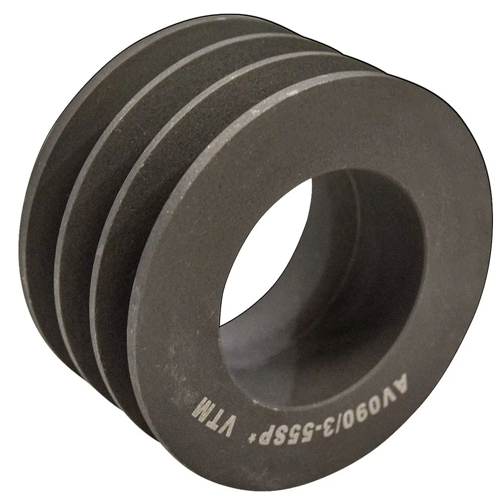 This is a replacement small triple pulley, part number 511090355A. It is made to fit all Bellonmit flail mowers. One large pulley and one small pulley are required for each mower. This triple pulley has an overall diameter of 3-3/4 in. and inside diameter of 2-1/8 in. and is made of steel.