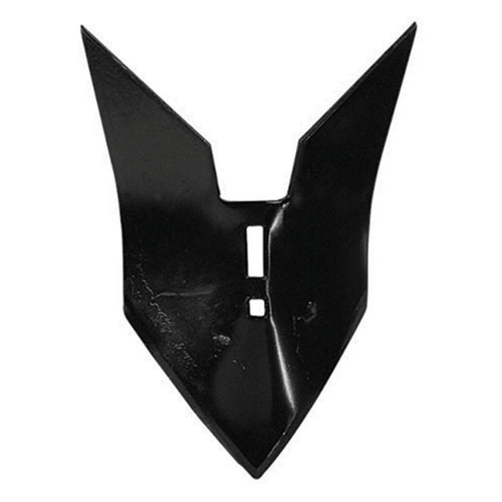 This heat treated steel furrower has a cutting width of 10 inches. The furrower is 1/4 inch thick and has a slot and bolt hole pattern.