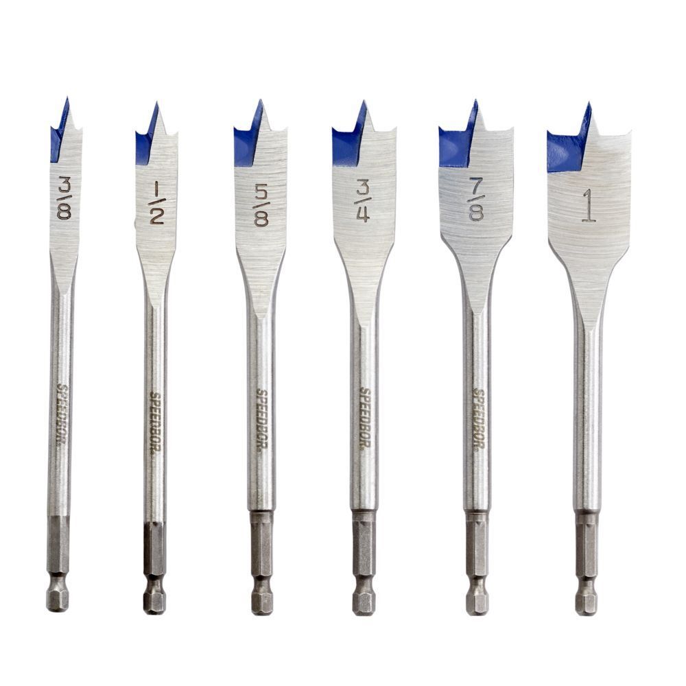 This spade bit set contains the high-performing Speedbor spade bits from Irwin. They last twice as long and cut twice as fast.