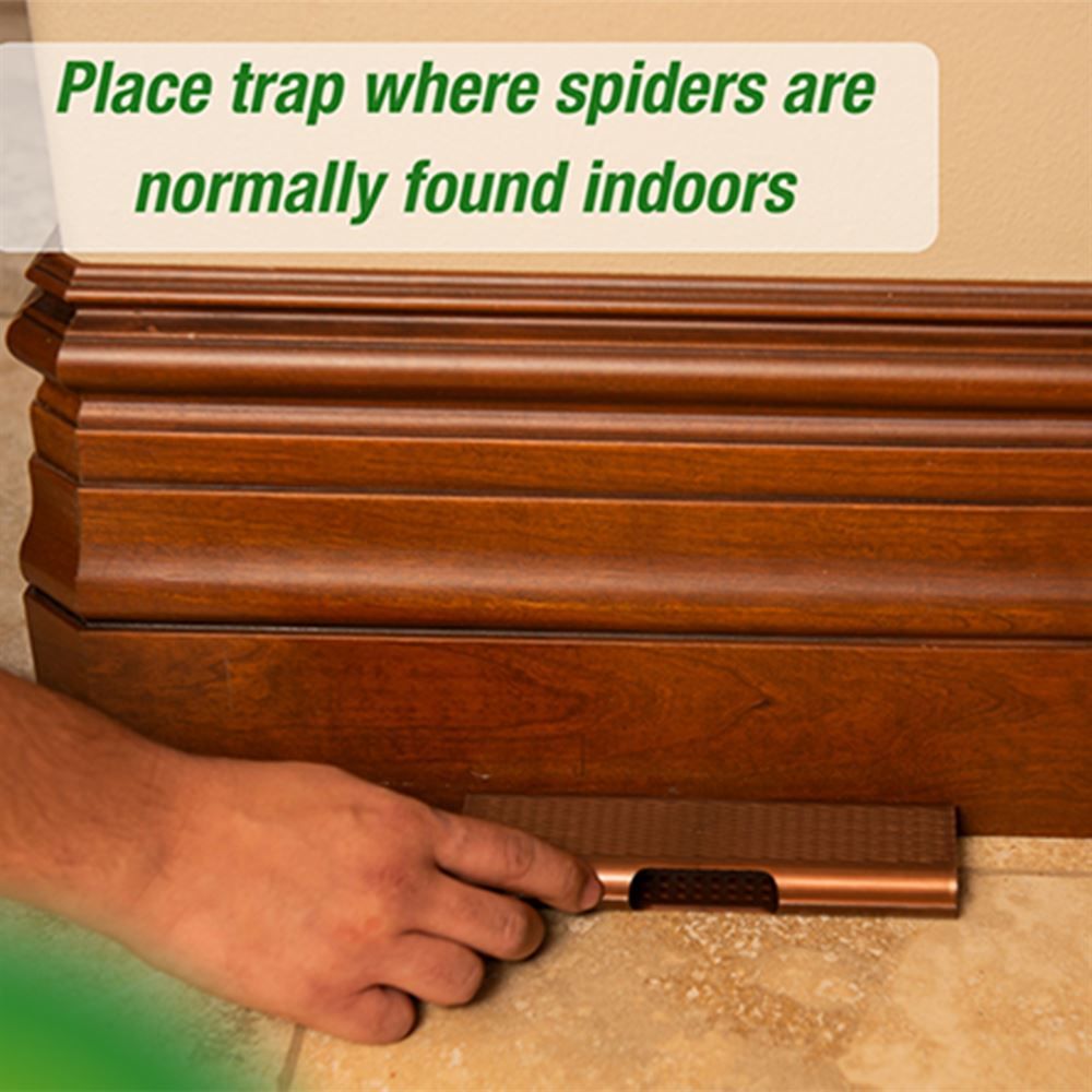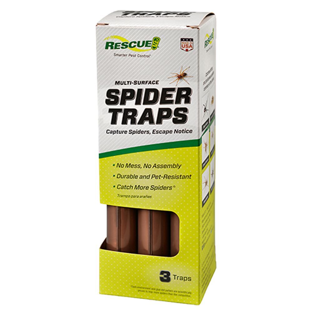 Place the Rescue® Multi-Surface Spider Trap indoors where spiders are found. Four entrances guide spiders to the interior of the trap where hundreds of glue dots hold them in place. Traps are glued on two sides so they can be turned to catch more spiders.