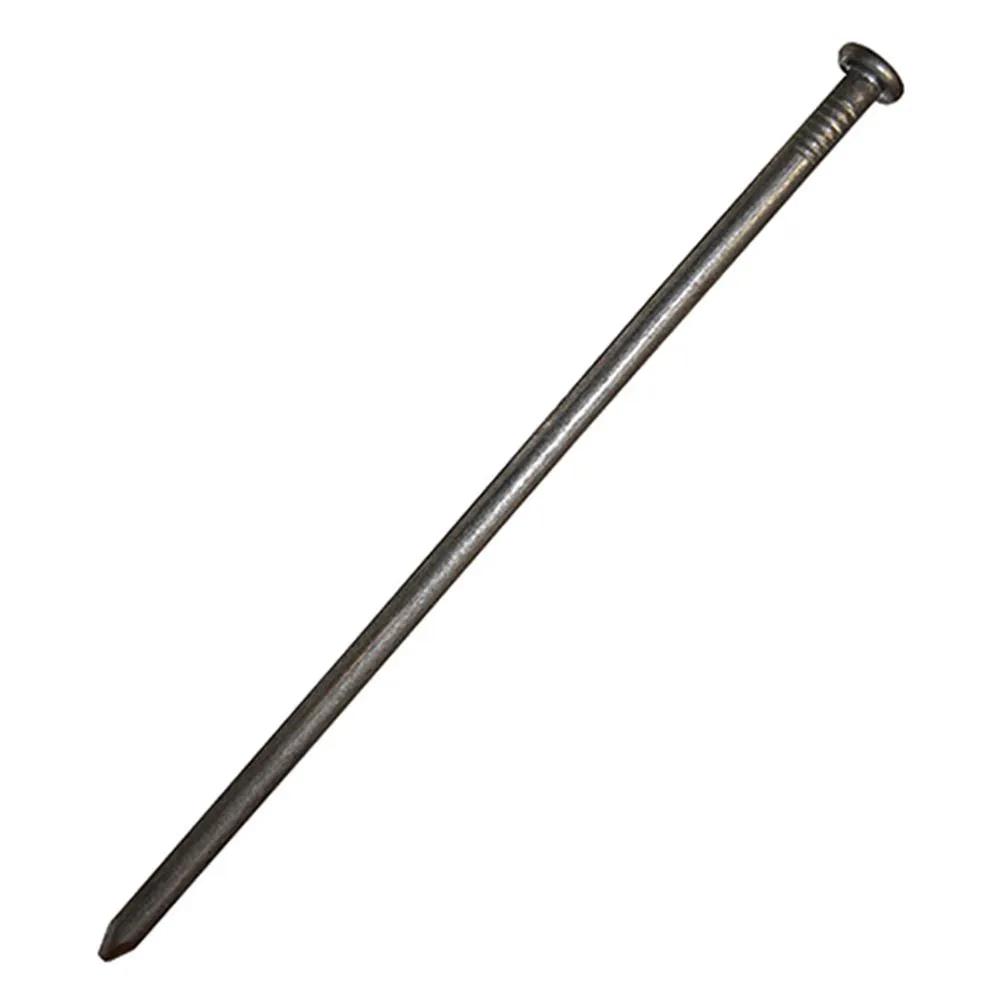 Help secure your construction projects with this spiked construction nail. This nail hardware works best on heavy timber or other types of substantial wood such as log buildings or railroads. This 12 inch size with a flat head and diamond shaped point at the bottom provides a precise measurement to best suit what your project needs. These nails are supplied in a 5 lb. box for a practical quantity.