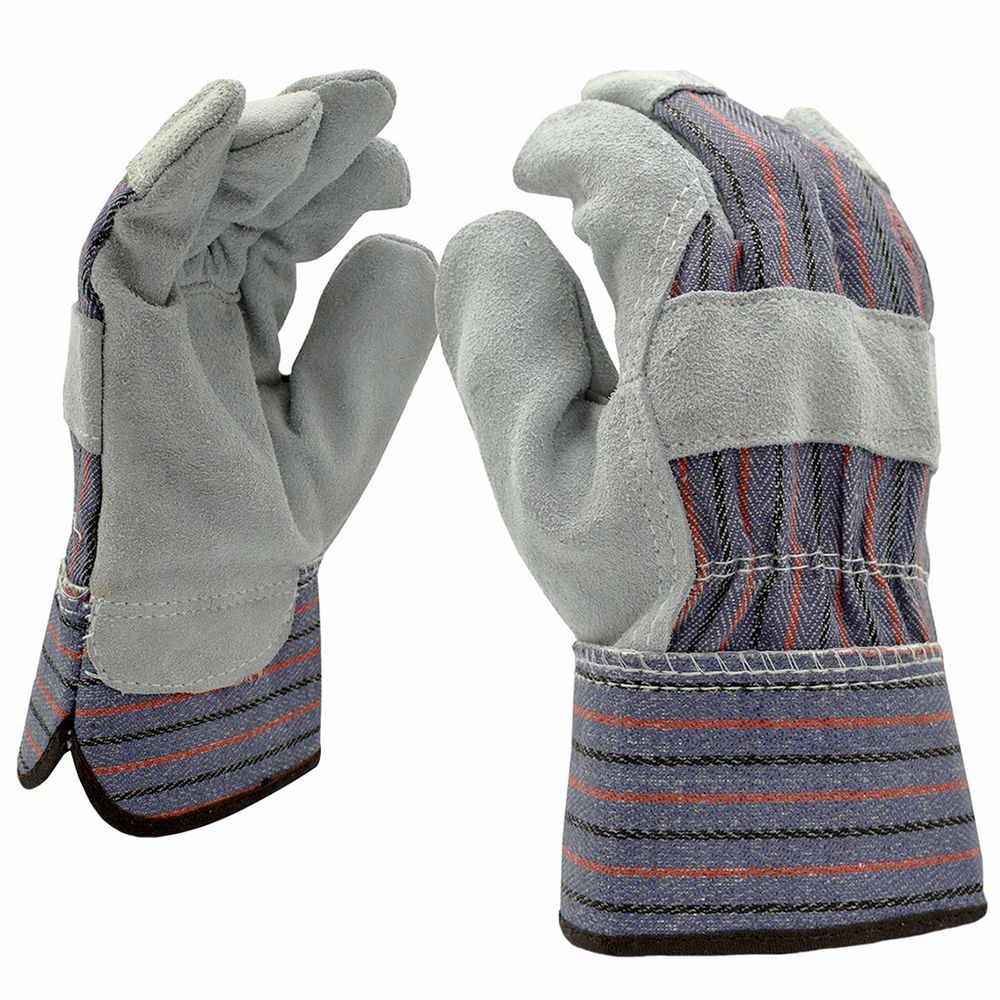 This Split Cowhide Leather Palm glove features a 2.5 inch denim safety cuff, a patch palm, and gunn pattern.