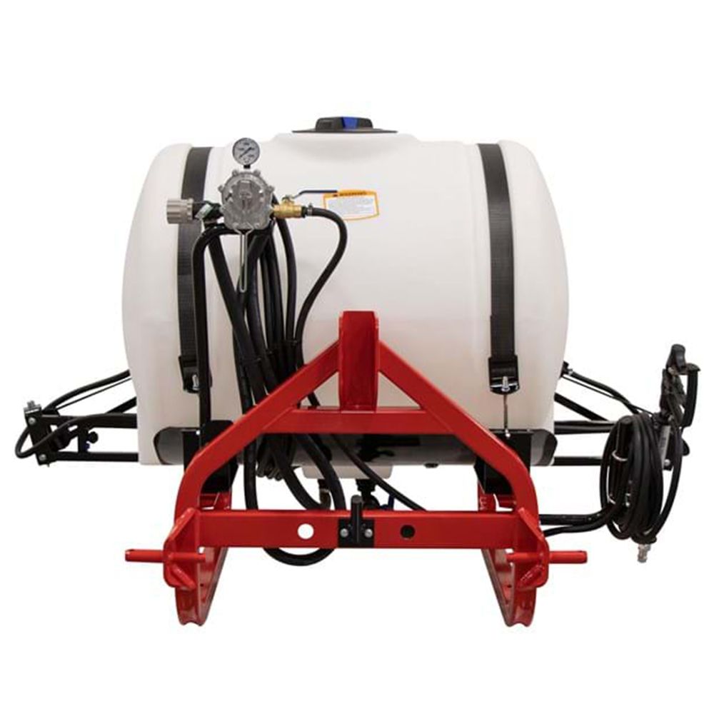 Designed to spray insecticides, herbicides, and even pesticides on fields and pastures, this FIMCO sprayer will connect in minutes to any Category 1 or Category 2 three-point hitch. Constructed with a corrosion resistant polyethylene tank, this sprayer has a convenient gallon and liter fluid volume indicator to measure its contents. There is also an 8 in. screw-on cap for easy filling on the tank. An eight row boom assembly is included, allowing for a 16.7 ft. coverage in one sweep.