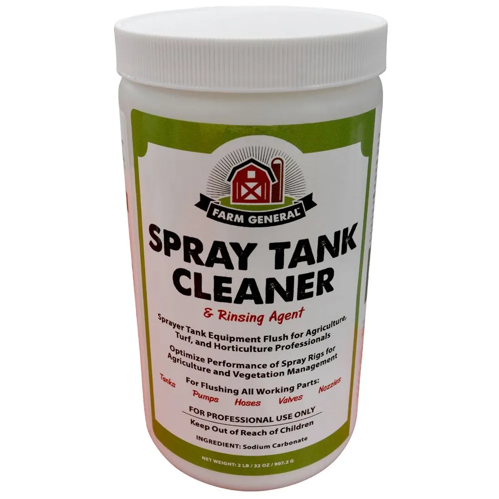 Clean out sprayer tanks over time to preserve their longevity. This sprayer tank cleaner is formulated from sodium carbonate and creates a moderately basic solution when mixed with water to clean these tanks. It also works well to flush bacteria and build-up from valves, hosing, and pumps. Please refer to the label for directions prior to use, as well as viewing the ratio chart of water and cleaner quantity to tank sizes. The container has a lid that seals for keeping the cleaner safely stored.