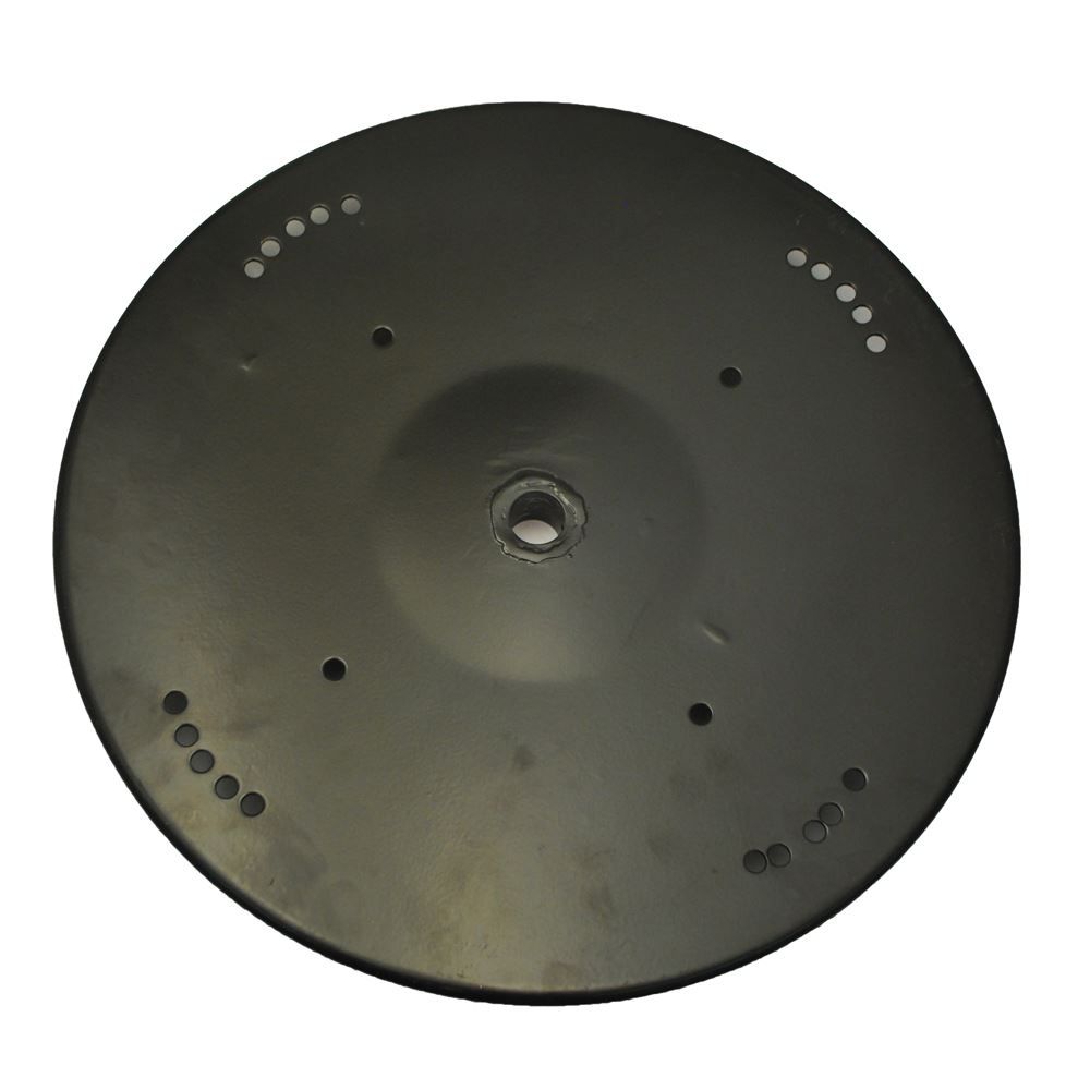 This disc spinner fits on the bottom of your hopper to evenly spin the seed onto your field.