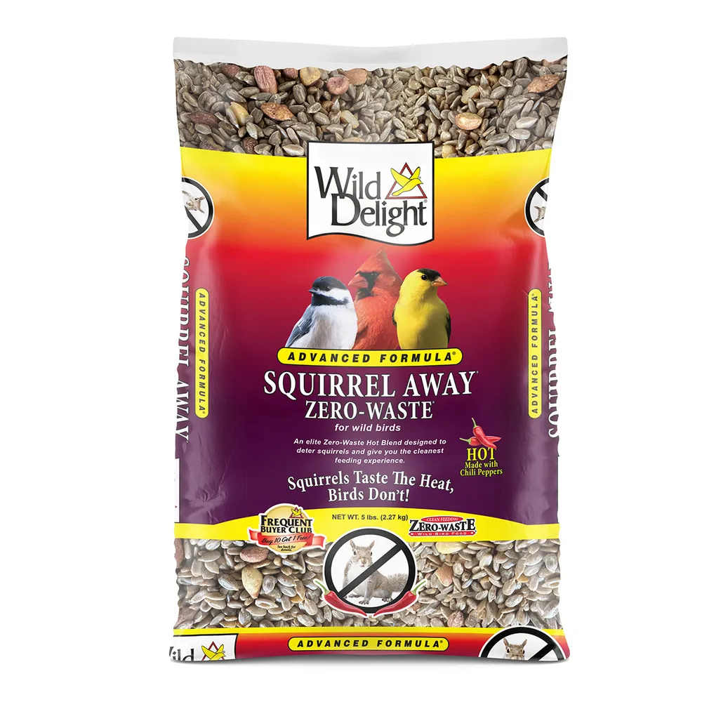 Wild Delight® Squirrel Away Zero Waste Bird Seed is made with real chili peppers so squirrels are repelled but birds are not.