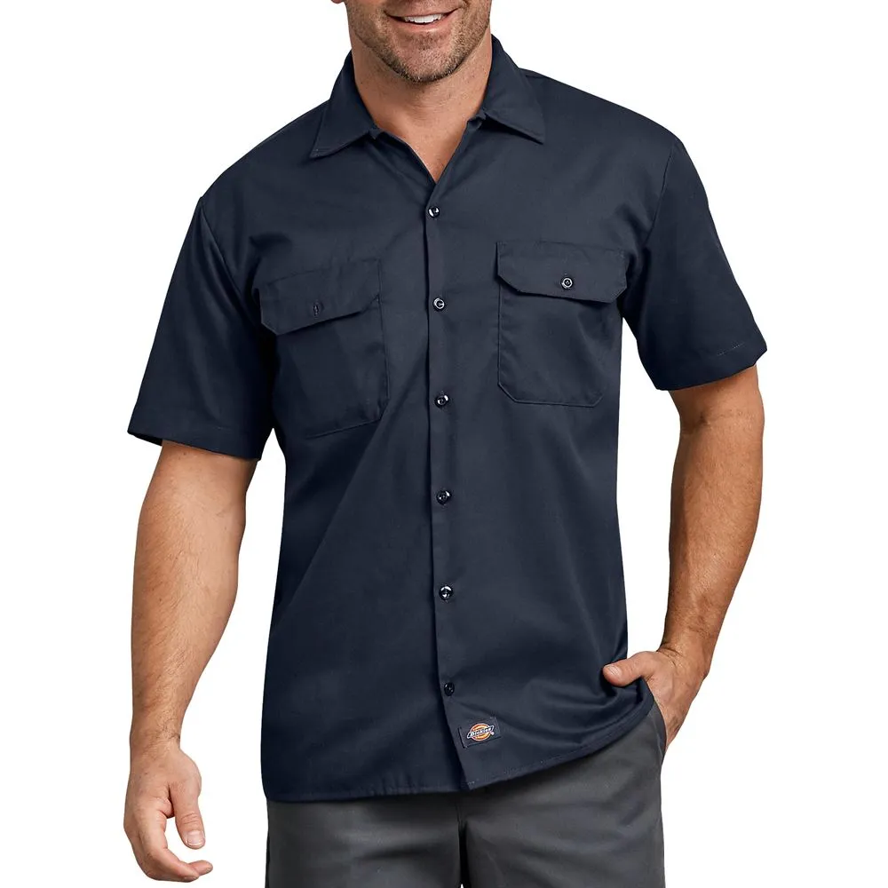 - Dickies® Short Sleeve Twill Work Shirt, Dark Navy, Medium