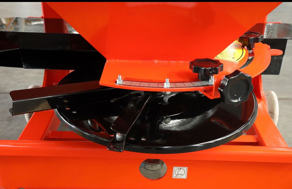 The disc system of the SSFB 500 Square Fertilizer Spreader ensures uniform broadcasting of granular or crystalline fertilizer over a greater area.
