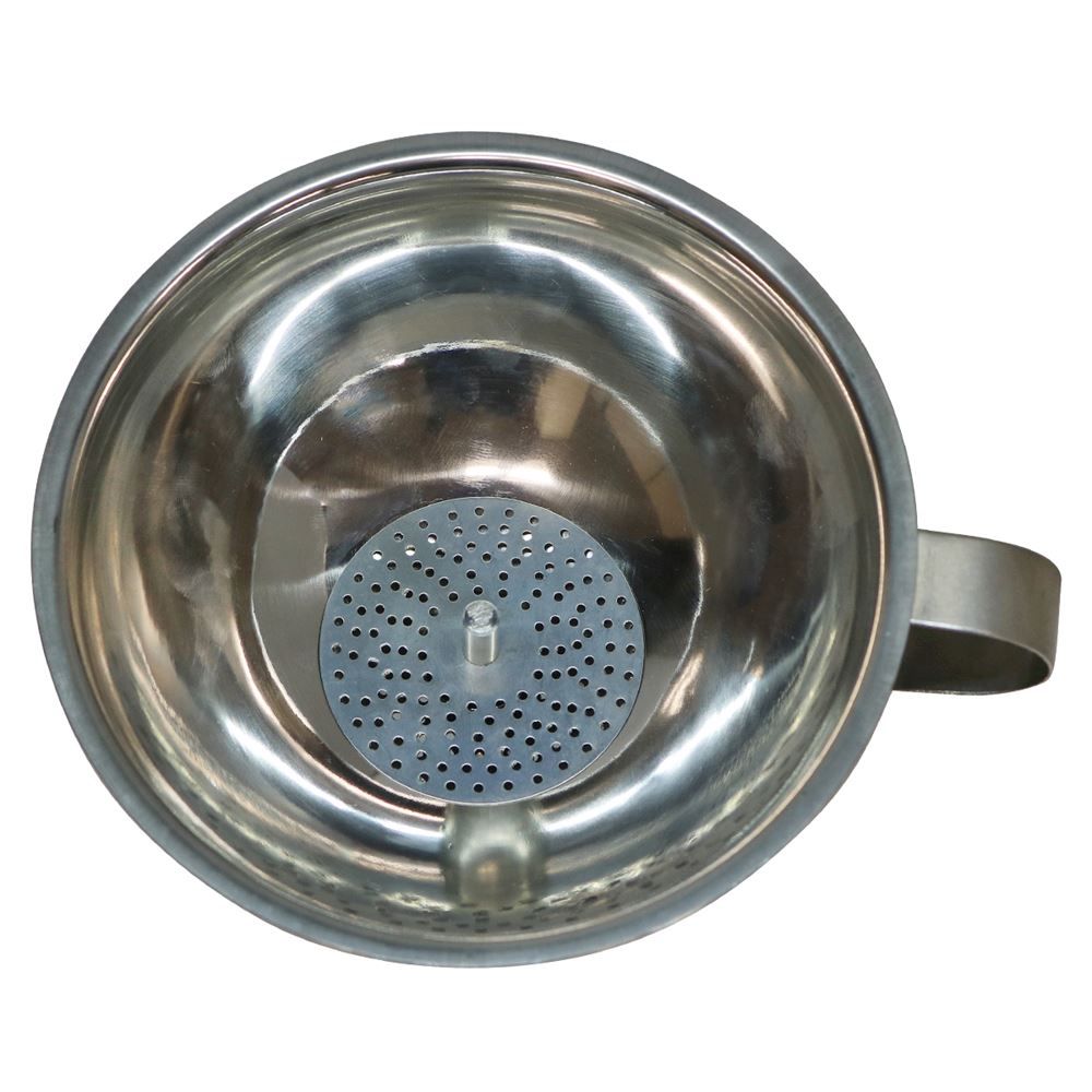 Make transferring easy cooking liquids easy with the stainless steel funnel. Funnel features a clip-in strainer to help you remove solids from your broths, oils and more. The strainer has a handle for better control and a 2 inch spout for stability. Constructed of stainless steel, this food grade funnel will last you a long time.