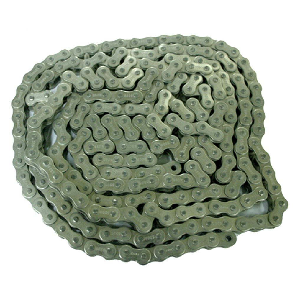 This #60 roller chain has a 0.750" pitch which is the distance from center to center of pins. The overall chain width is 1.00". It is used in many agriculture equipment applications.