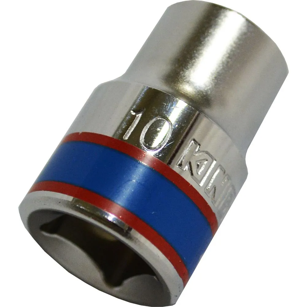 A standard socket is a very useful tool to have to make sure bolts or other fastener applications are tightened correctly. This standard socket measures 10M with a 3/8 in. drive and is durable due to its chrome vanadium alloy steel construction.