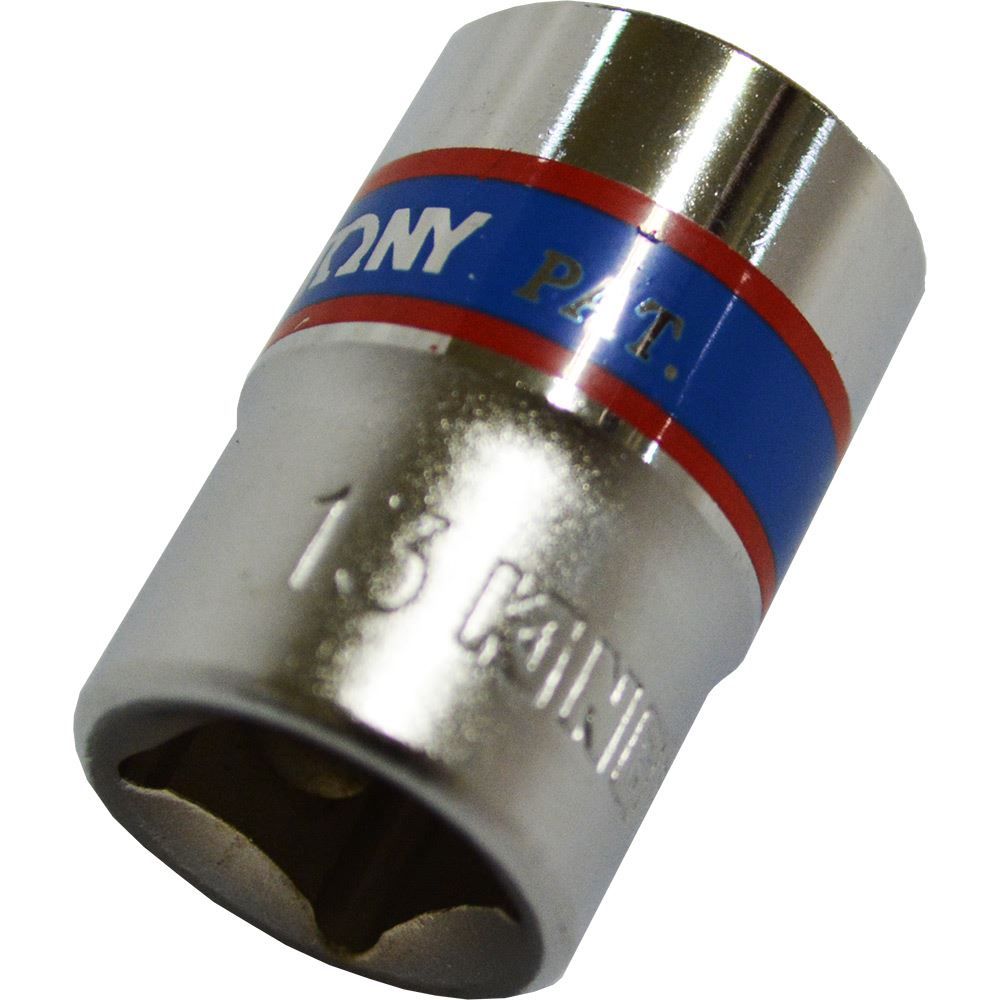 A standard socket is a very useful tool to have to make sure bolts or other fastener applications are tightened correctly. This standard socket measures 13M with a 3/8 in. drive and is durable due to its chrome vanadium alloy steel construction.