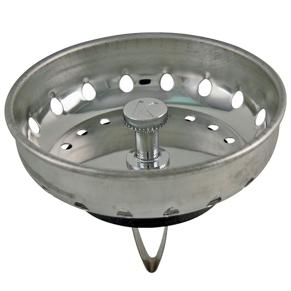 Stainless steel replacement strainer basket with a spring-style post.