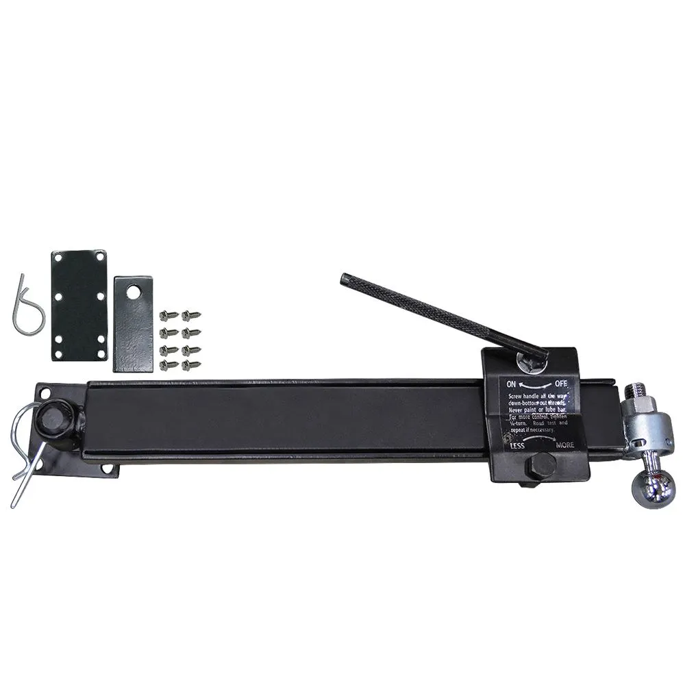This trailer sway control kit reduces lateral movement caused by wind, passing trucks or uneven roads for a safer ride while towing. Dual friction brakes keep your trailer stable and directly behind you. This durable carbon steel trailer sway control is easy to install and remove making it ideal for occasional or frequent use.