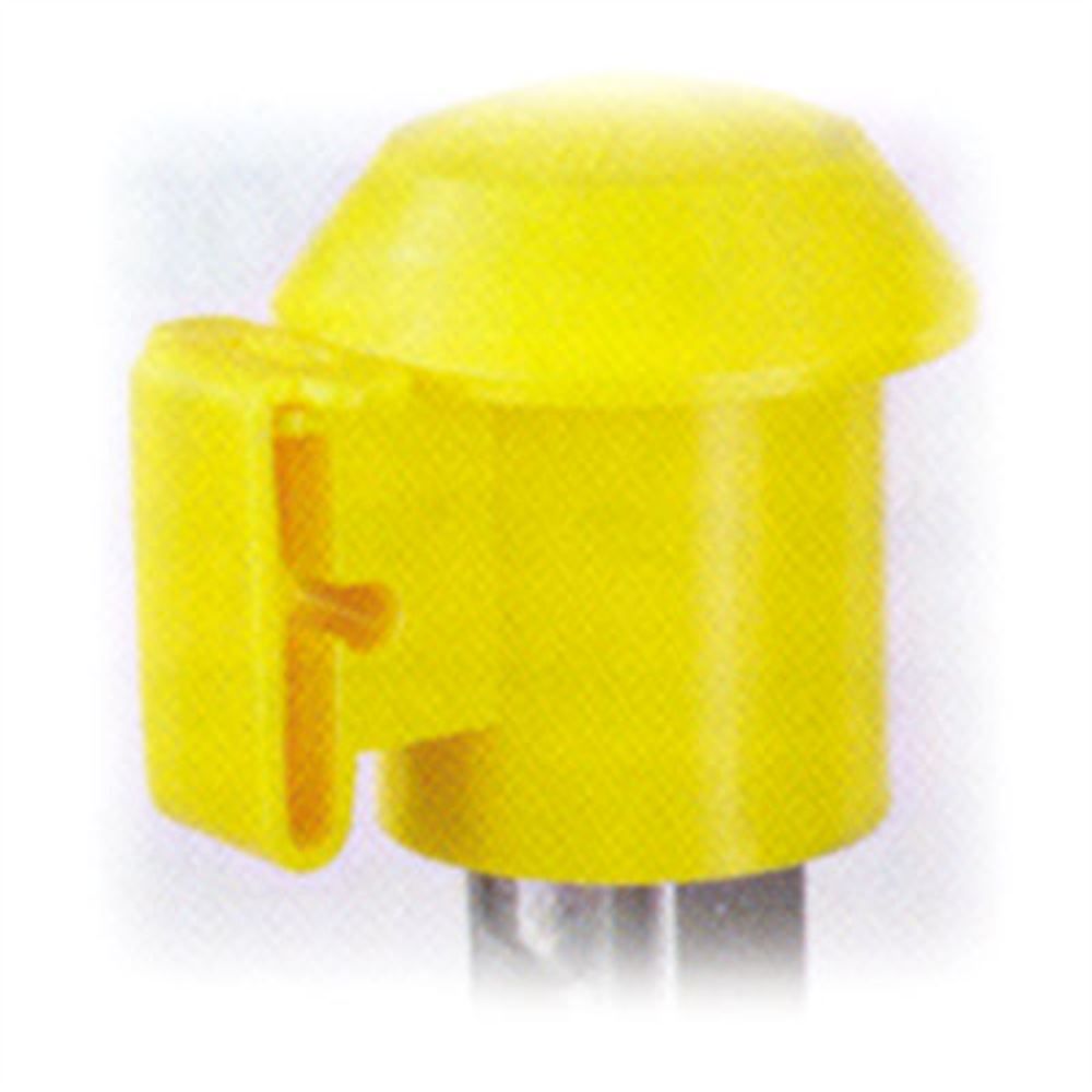 This T Post Top'R Yellow Electric Fence Insulator fits all T posts and can be nailed on top of wooden posts. It protects horses and other livestock from sharp jagged T post tops. Can be installed with wire holders facing front, back, right, or left.