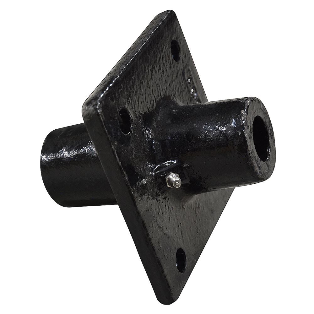This is a standard four-bolt tail wheel cast hub made to fit rotary cutters with a 1-inch axle.
