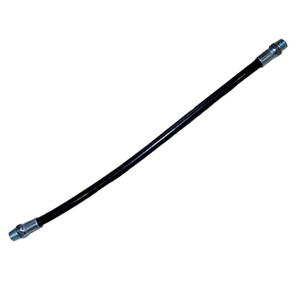 The thermoplastic grease whip hose has a working PSI of 3000 and is 12 in. long. With 1/8 in. MNPT threads and SAE 100R7 construction, the burst pressure is 12000 PSI on this grease whip hose.