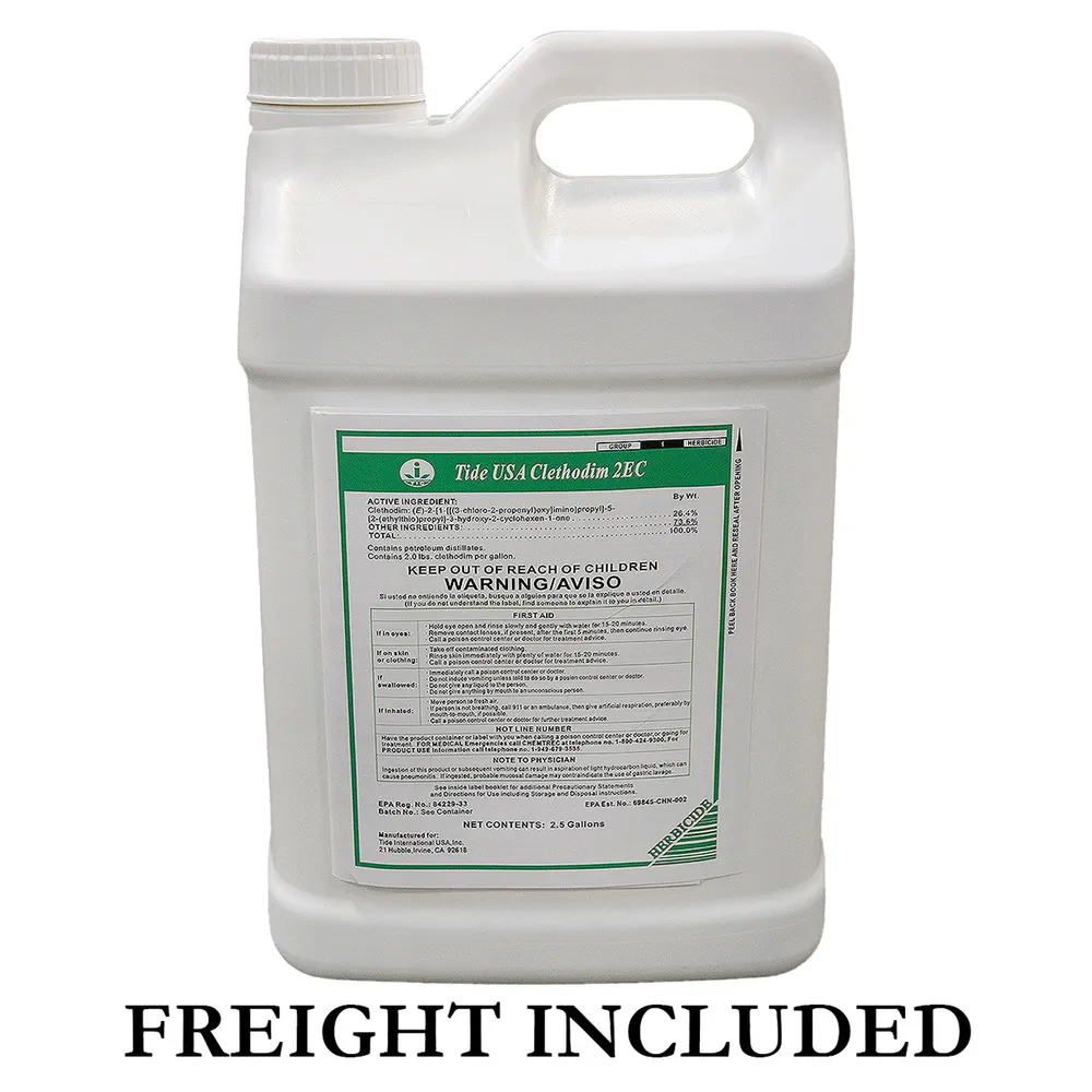 Looking for a herbicide that can control a wide range of the toughest annual and perennial grasses in soybeans, potatoes, sugarbeets, sunflowers, and many other crops? This 2.5-gallon of Tide Clethodim 2EC not only can control a variety of annual crops it can also control grasses, it does not control sedges or broadleaf weeds.
