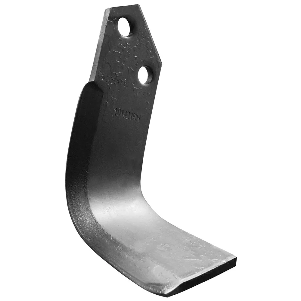 Attach a set of these tiller blades to your King KutterĀ® rotary tiller. Built as a right hand fit, this steel constructed blade is also flat in shape. It measures 7-5/8 inches in height, 2-3/8 inches wide, and 3/8 inches thick. There is one bolt hole that measures 9/16 inch in diameter. This strong rotary tiller blade is used to dig and overturn the soil for field preparation. It may be used with its paired left hand blade ASC # 101420, if instructed on your rotary tiller. If you would like to replace your whole set you will have to purchase quantity of 4.