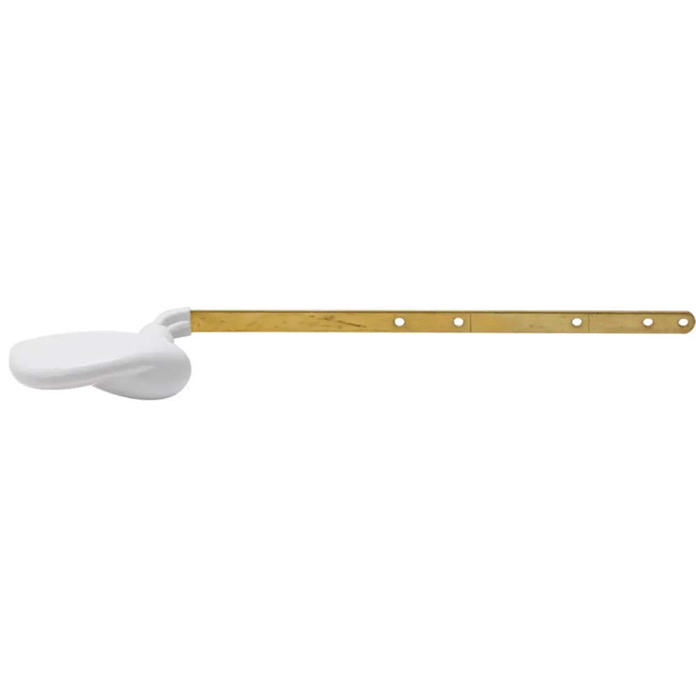 Easy to install with a self-tightening lock nut this toilet flush lever can be trimmed and bent to fit most front, side, and angle mount tanks. Basic yet effective solution to a problem toilet handle.