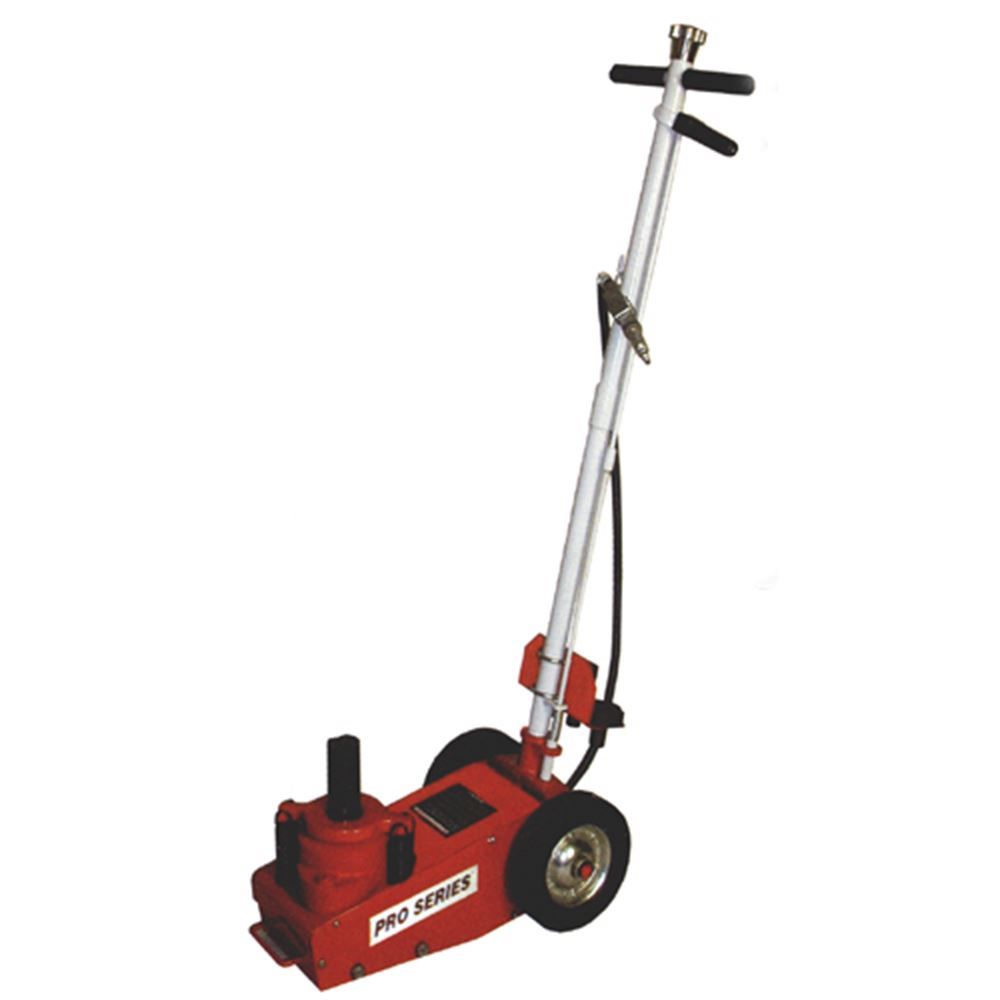 This 22 Ton Air Hydraulic Service Jack is an excellent addition to any farm, shop, or home. It features oversized rubber wheels, a reinforced rubber oil-resistant airline, and a generous 44,000 lbs lifting capacity. It also includes three adapter plates to fit a wide array of equipment and vehicles.