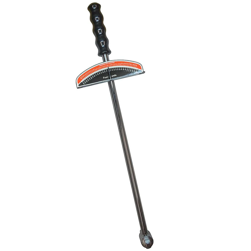 With a contoured handle for a firm hold, this needle torque wrench is favored for simple reliability. With both 3/8 in. and 1/2 in. drives, and a scale calibrated in foot - lbs. and meters - kg., this torque wrench provides versatility. The steel construction with corrosion-resistant finish is designed for high-quality long lasting performance.
