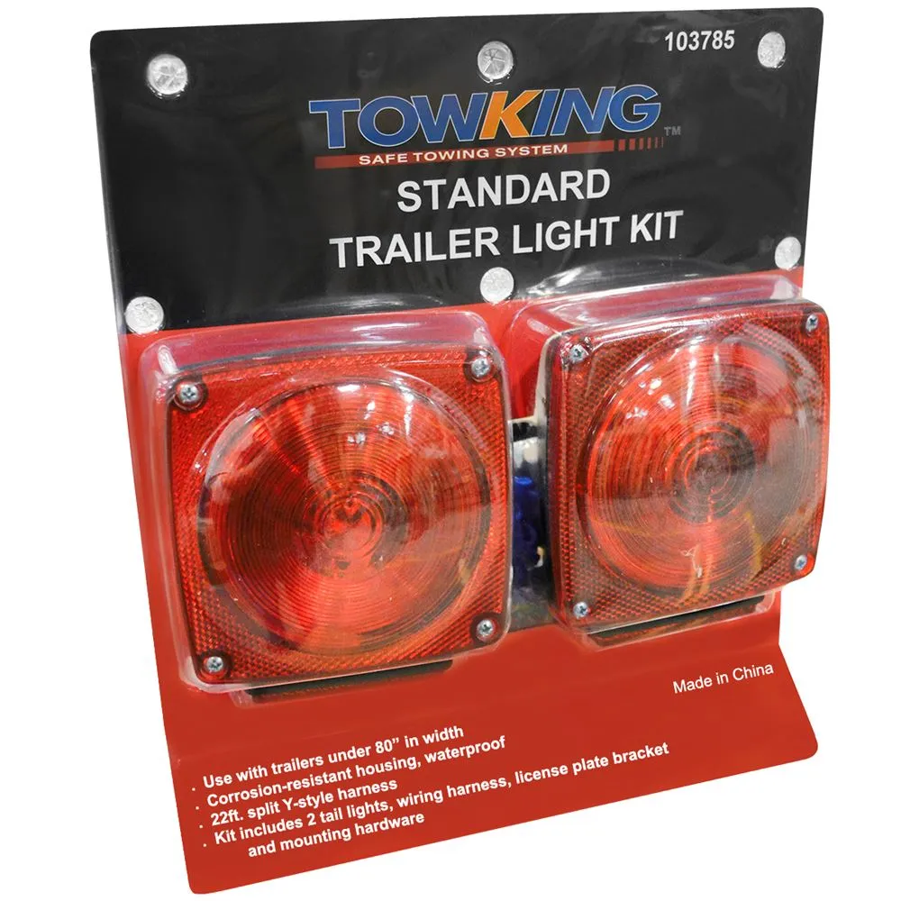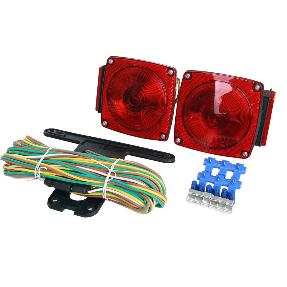 This standard 12 volt trailer light kit features two built-in red marker clearance trailer lights that let other vehicles know when you're stopping or turning so you can tow safely. The 23 ft. split Y-style harness is easy to mount and its corrosion-resistant housing stands up to even tough driving conditions. The trailer light kit also includes a license plate light and bracket.