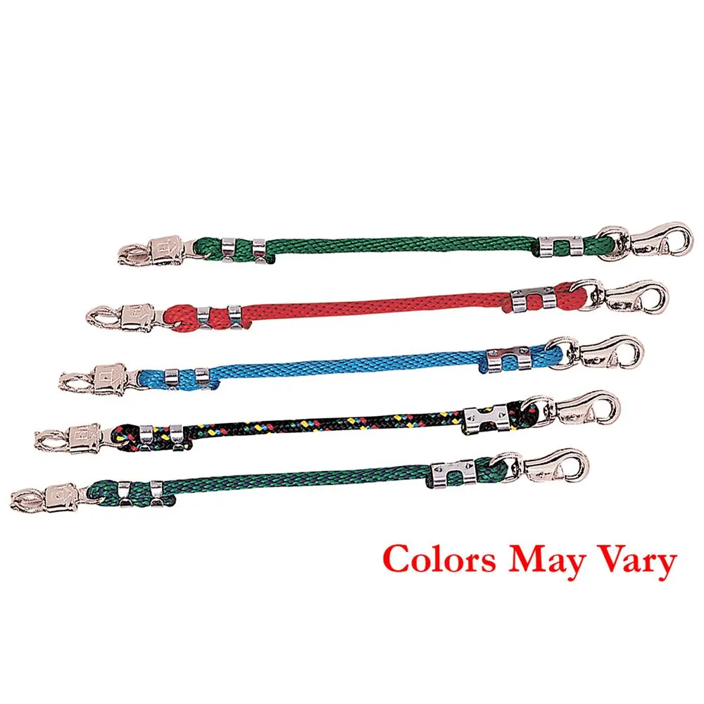 This poly rope trailer tie has a bull snap on one end, and a panic snap on the other end. It features nickel-plated hardware for strength and durability.