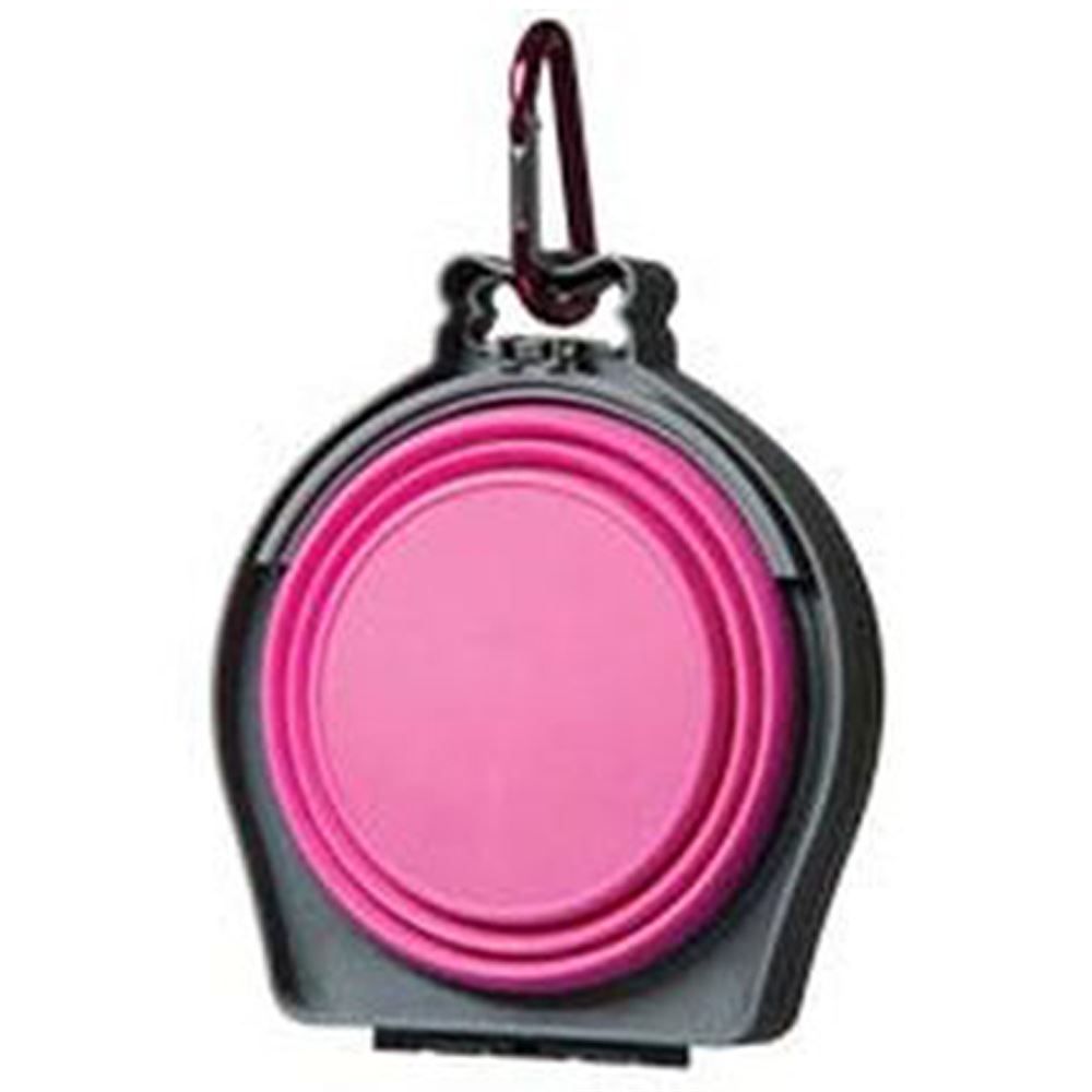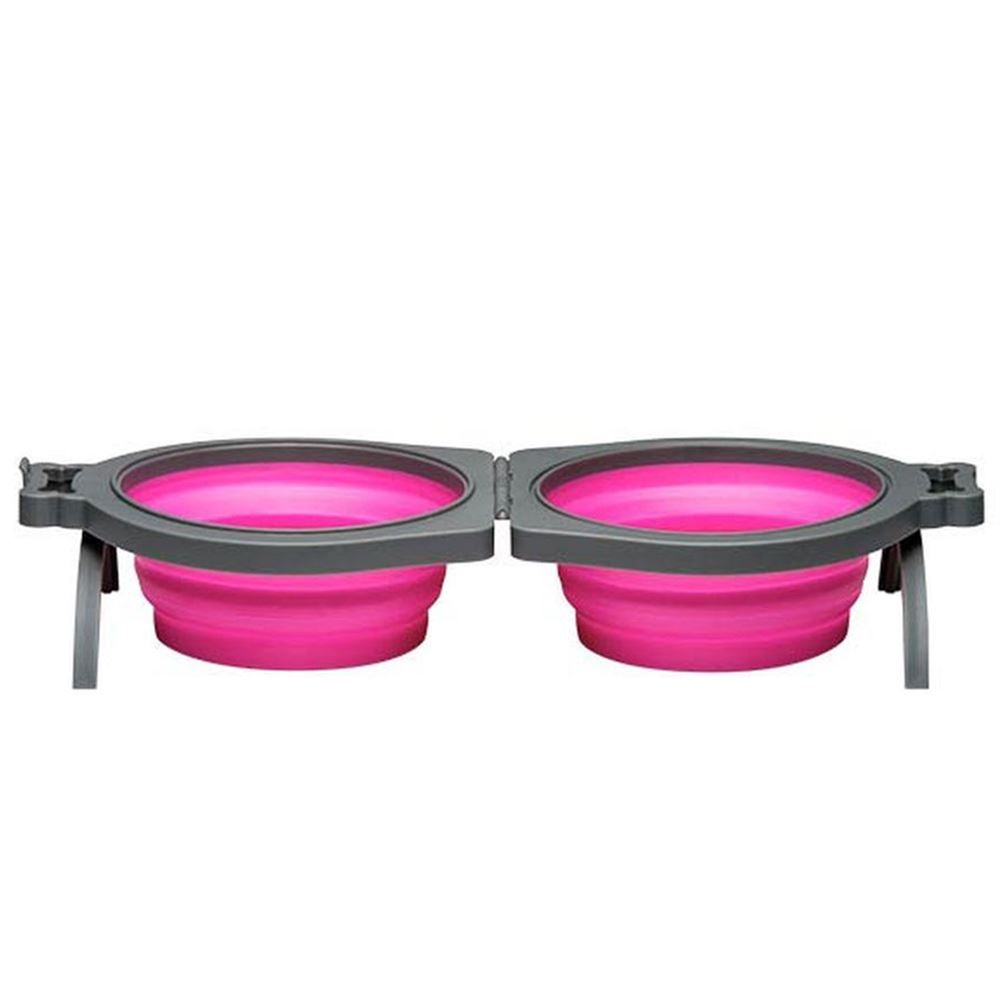 This double travel bowl is designed for pets on the go. Featuring an integrated locking lid to store dry food and can easily collapse for easy storage.