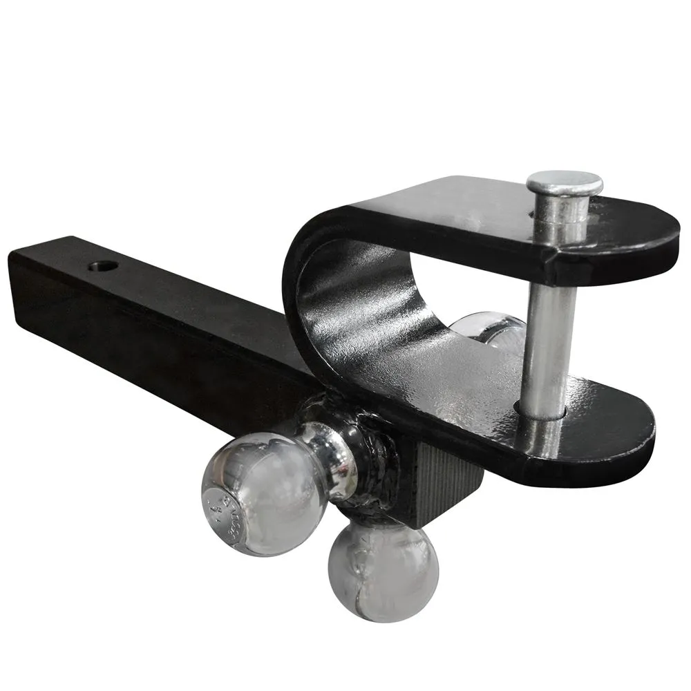 Tri-ball hitches are designed to have multiple hitching options for hauling loads of different weights and sizes. The three ball mounts and u clevis are constructed from steel for strength. The 1-7/8 inch ball has GTW of 2,000 lbs., the 2 inch ball has GTW of 6,000 lbs., and the 2-5/16 inch ball has GTW of 10,000 lbs. The shank is powder coated to help protect it from harsh weather elements that can cause wear. This 3 way hitch can fit most standard 2 inch receivers. There is a hitch pin that is included with this tri-ball hitch.