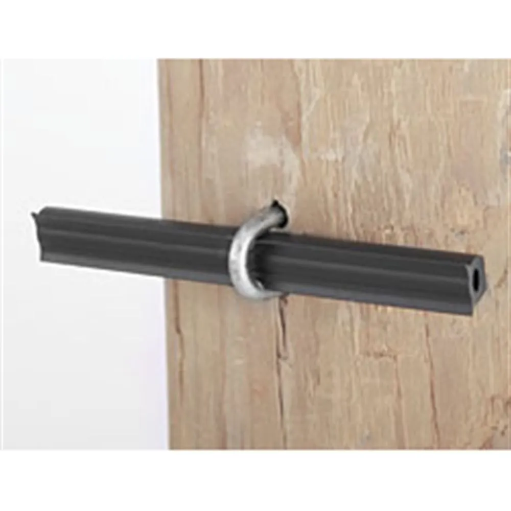 This 4" tube insulator for wood posts is made from rigid high-density polyethylene with carbon black for superior UV resistance. It is 4 inches in length and 3/8 inch in diameter. Ribs prevent the insulator from sliding. Staples are not included in the pack.