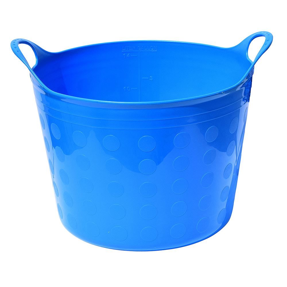 This sky blue multi-purpose flex tub can be used for the farm, home, or shop. You can store cleaning supplies, toys, animal supplies, and more in this heavy-duty rubber flexible 12-gallon tub.