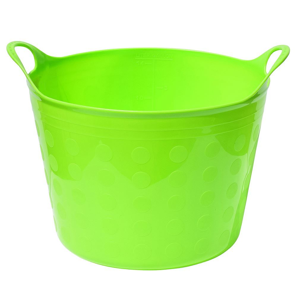 This green multi-purpose flexible tub is made by Tuff Stuff Products™ and is embossed with gallons/liters on the inside of the tub.