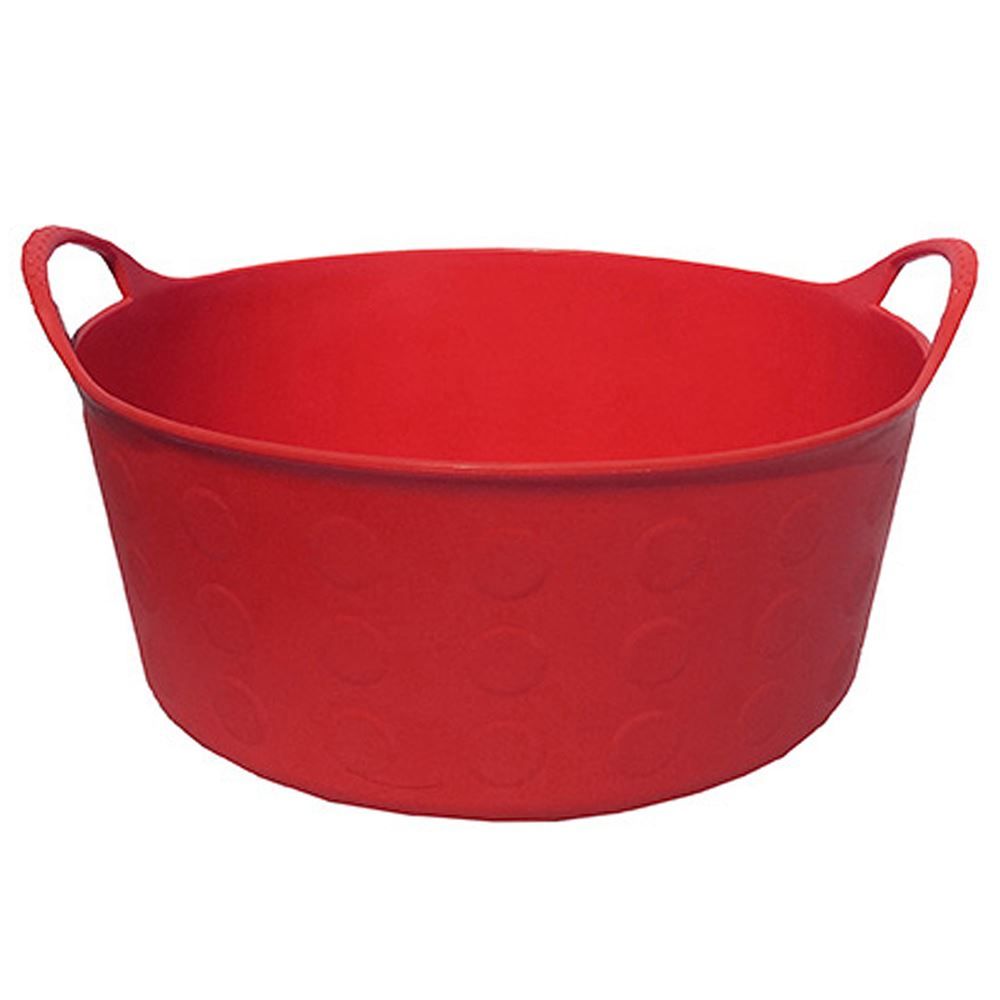 This short red multi-purpose flex tub can be used for the farm, home, or shop. You can store cleaning supplies, toys, animal supplies, and more in this heavy-duty rubber flexible 4-gallon tub.