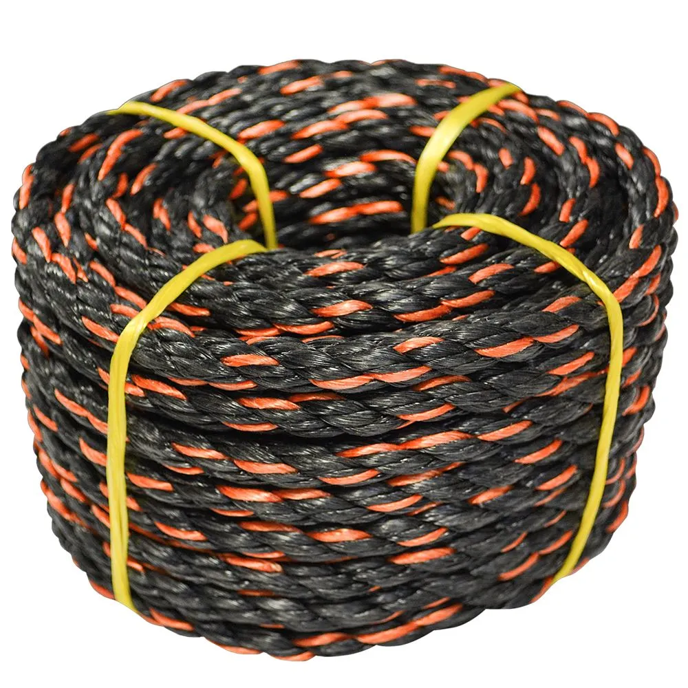 Use this polypropylene rope to secure freight, for marine purposes and more. This twisted rope has a strong resistance against chemicals, oil, mildew, water and rotting. It has a breaking strength of 2,865 lbs., but is not for use with overhead lifting applications. The pliable twisted construction is ideal to secure large loads.