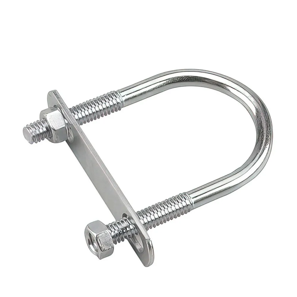 Round U-shaped bolt designed for anchoring pipe, rope, tubing, or any round object. Suitable for indoor or outdoor use. Available in a variety of sizes.