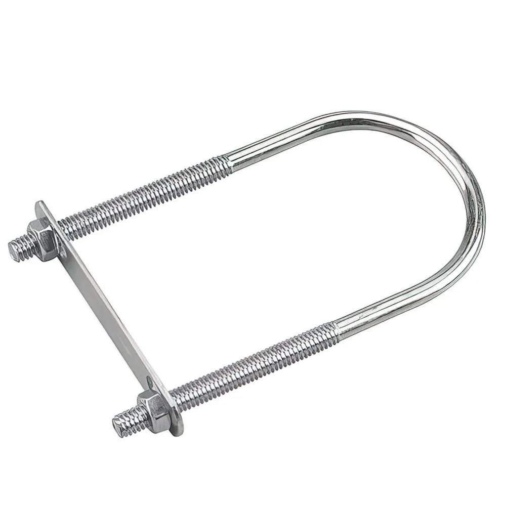 Round U-shaped bolt designed for anchoring pipe, rope, tubing, or any round object. Suitable for indoor or outdoor use. Available in a variety of sizes.