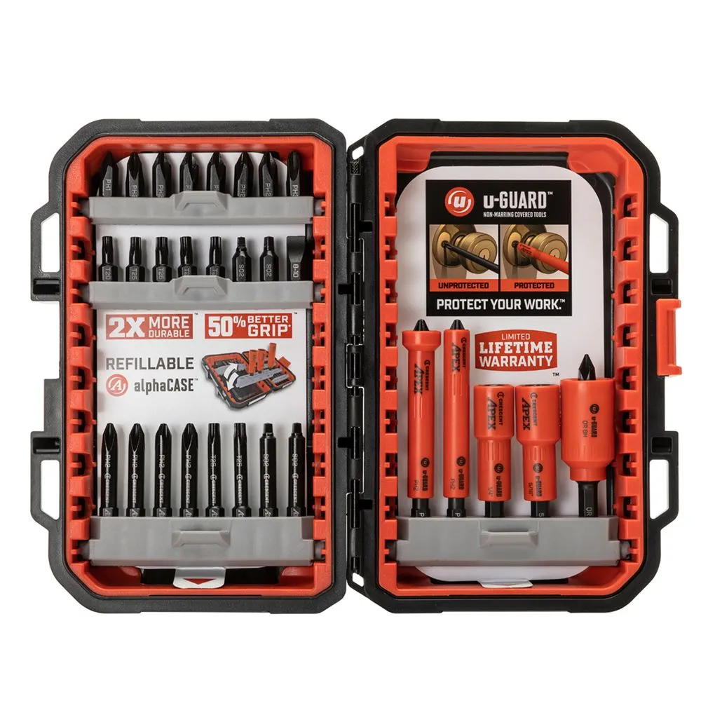 This Crescent Apex U-Guard Fastening Set is impact rated to provide extended use. The non marring U-Guard covering protects finishes from damage. The design ensures a 50% better grip on Phillips® bits.