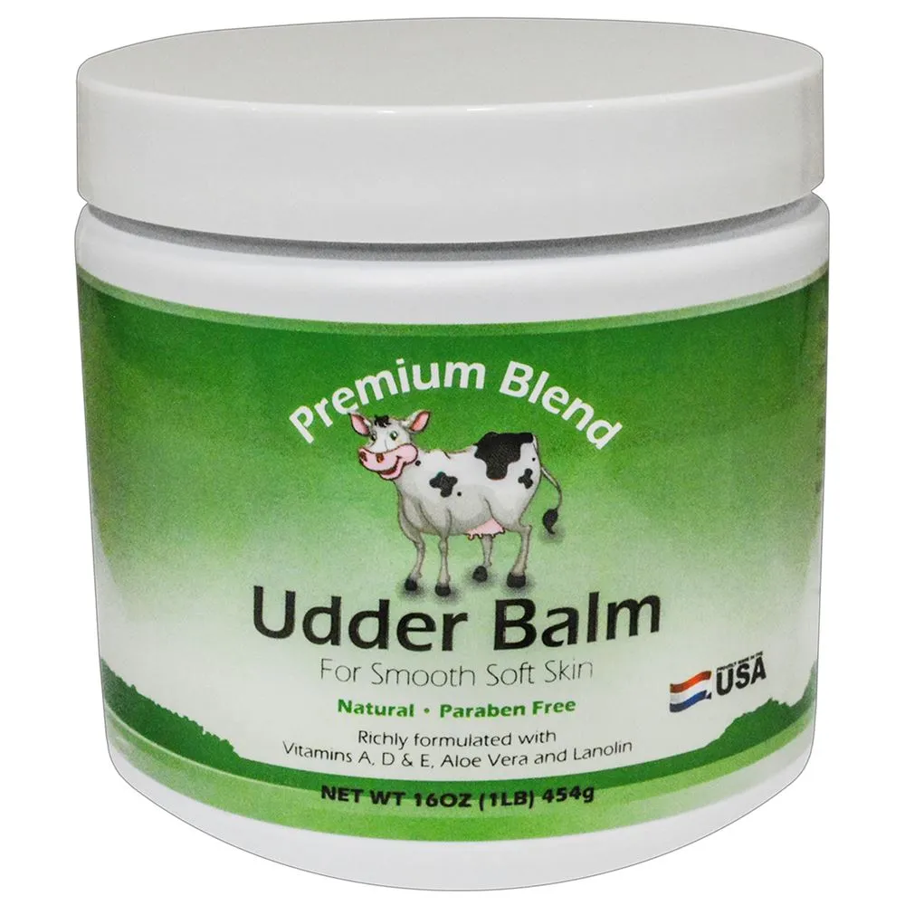Apply this natural udder ointment on cows for smooth and healthy skin. This udder balm is paraben free and is formulated with vitamins A, D and E, Aloe Vera, and Lanolin. This cow balm is a 16 oz. jar with additional sizes available. Please refer to the label for the full list of ingredients and proper application instructions.