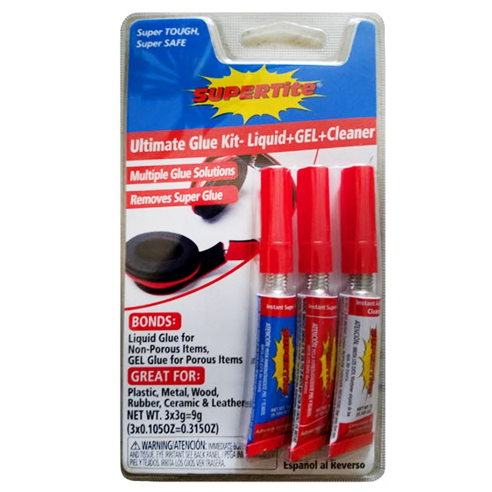 This ultimate glue kit contains liquid glue for non-porous items, gel glue for porous items, and a cleaner for removal.