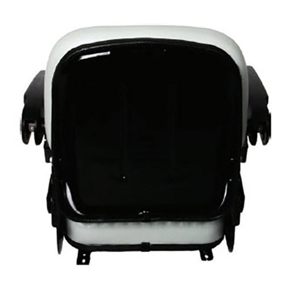 The seat and backrest on this universal tractor seat replacement are both constructed from durable and water resistant PVC. The seat dimensions measure 19-11/16 in. width x 21 in. depth and the backrest measures 20-1/8 in. width x 17 in. tall. This tractor seat has slotted slides that allow you adjust the position of the seat and lock it into place. The dual armrests also can adjust in height and flip up for an easy entrance and exit. This universal tractor seat is designed to accept suspensions and an operator presence switch.