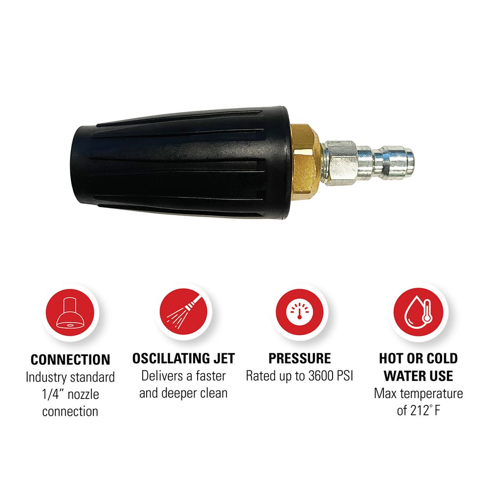 - This 1/4-inch QC turbo nozzle is easy-to-use and works with most pressure washer extension spray wands and is built for hot or cold water