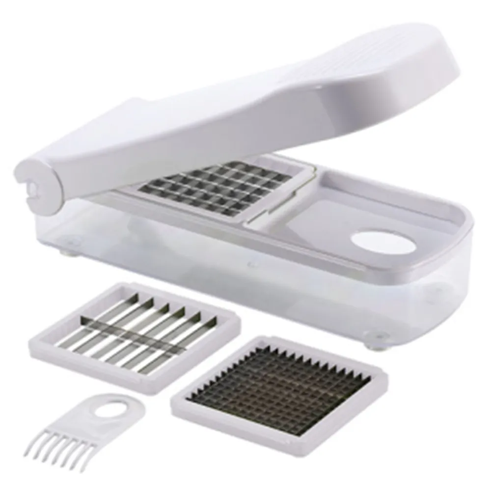 - Three blade plates: 3/16 in. square chopper, 7/16 in. square dicer and a 3/16 in. x 1-1/2 in. slicer