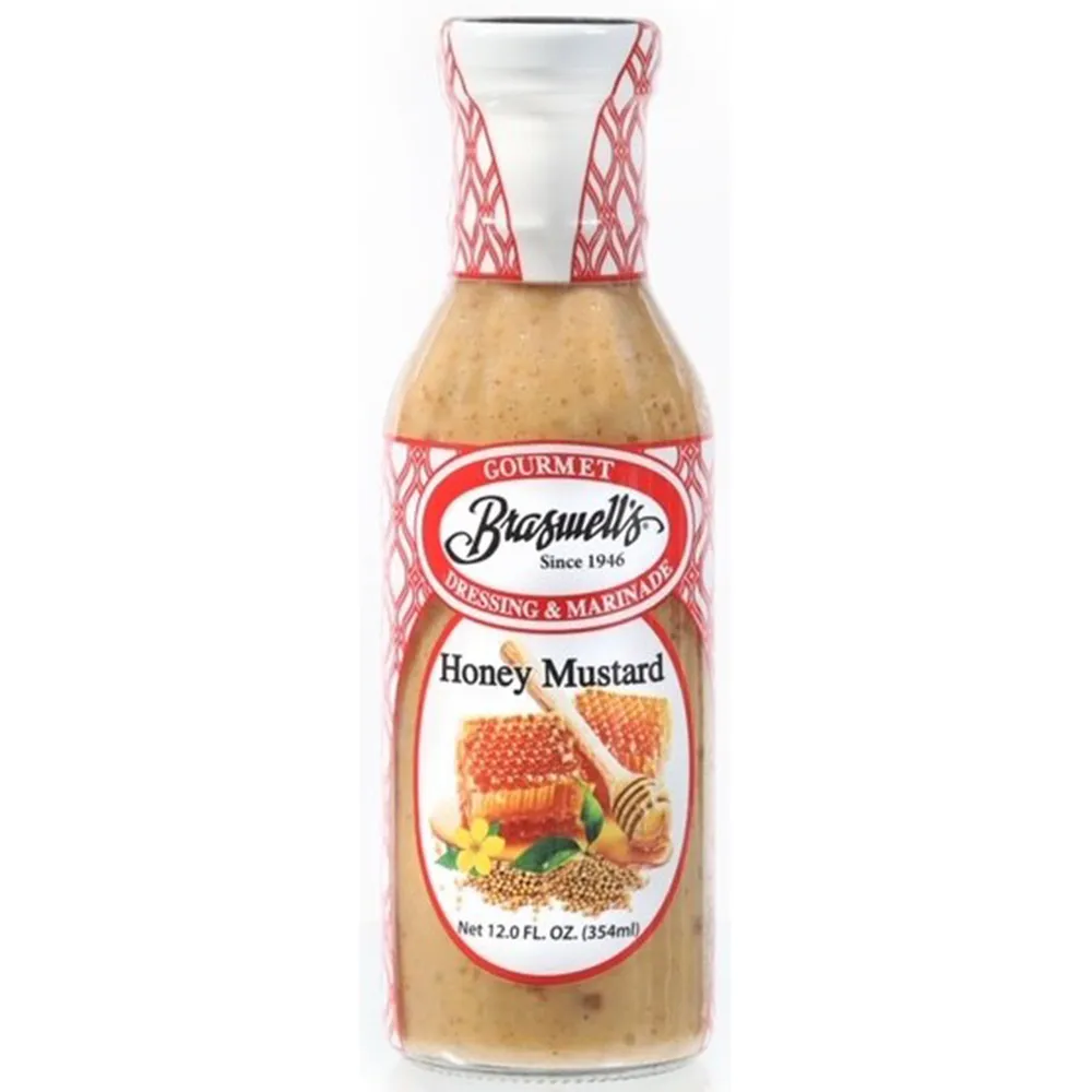 This 12-ounce bottle of Braswell's Vidalia Onion Honey Mustard Dressing is a combination of the sweetness of honey and the tanginess of mustard with the unique flavor of Vidalia onions, which are known for their mild and sweet taste.