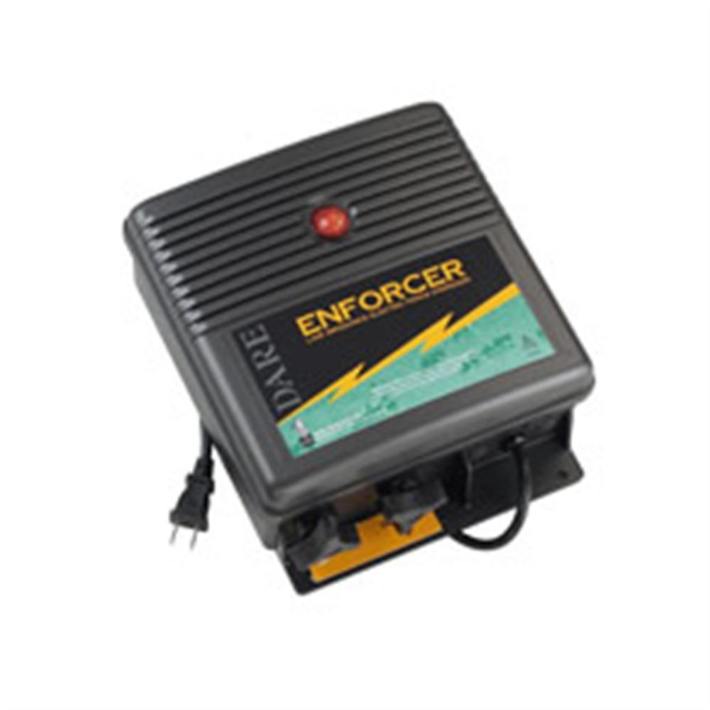 DE300 Dare Electric Fence Controller, This controller is powerful pulsating ultra low impedance electric fence energizer that comes in 110 volt AC power. All AC operated controllers come with easy-access terminals and mounting brackets for quick connections and installation. It comes with a .75 peak joule output under the most difficult fence conditions. They have all weather construction for longer life. It is designed and assembled in U.S.A. and built to UL/CSA specifications, and comes with a full one year warranty - including lightning and power surge. The controller has modular circuitry for fast and easy repair, and built in lightning protection. This controller is rated at .75 joule and up to 75 acres over grown fence controlled.