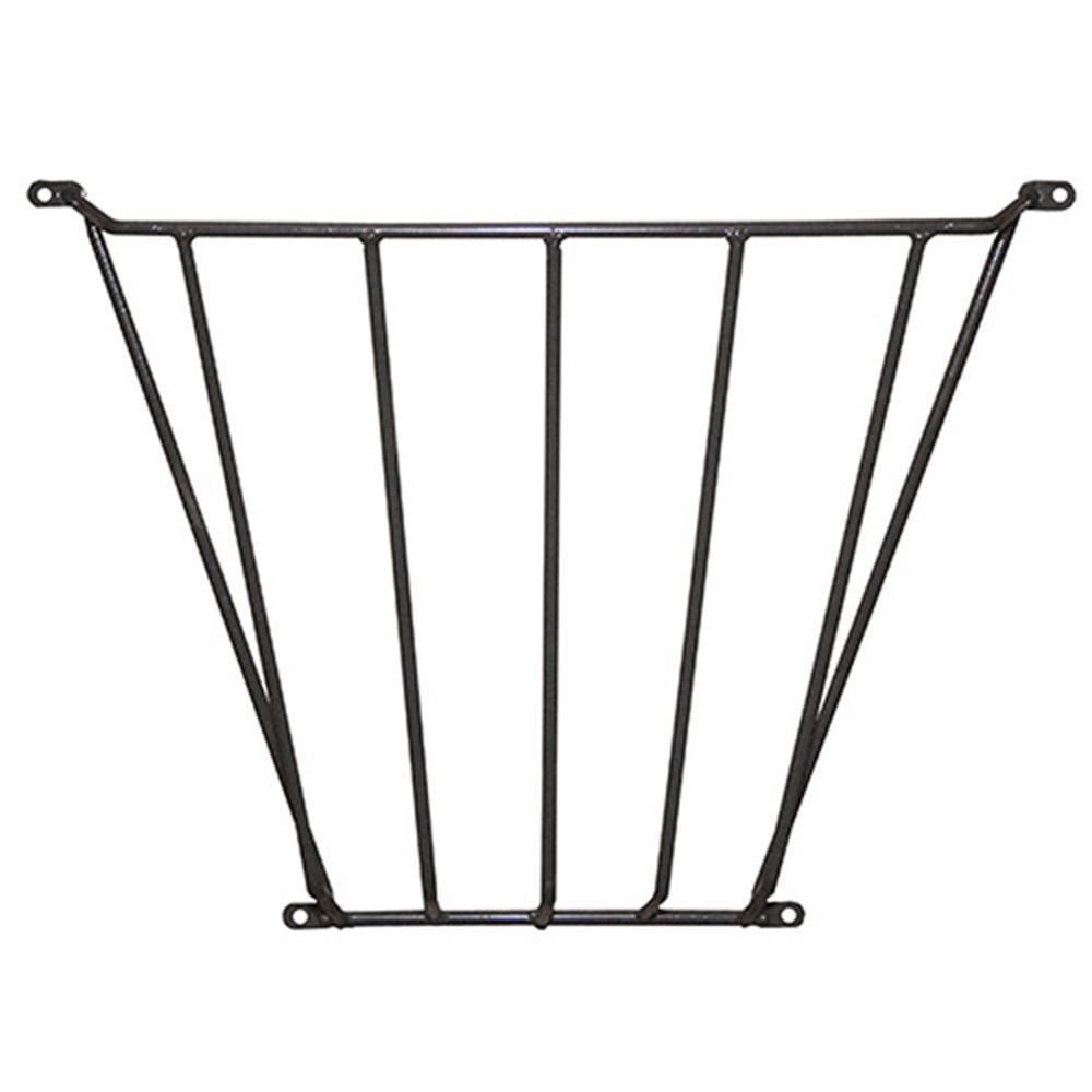This Wall Hay Rack is made with 3/8" diameter steel rod and is finished with a premium powder coat paint. It is 34" Length, 27" Height, and 12" Width.