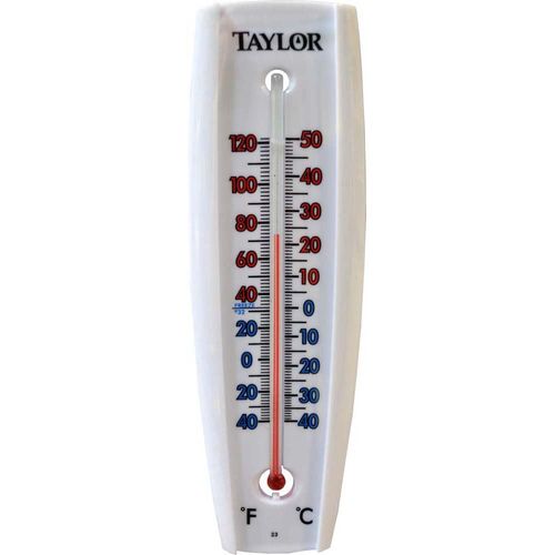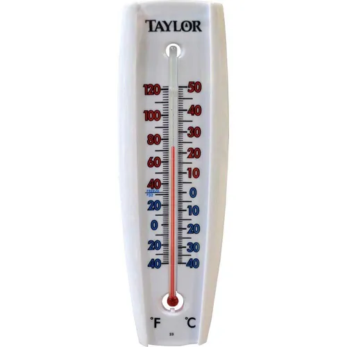 This weather-resistant and rustproof thermometer has a contemporary curved look with large, easy-to-read numerals in blue and red. It can easily be mounted outdoors to a window or wall for energy conservation in the home.